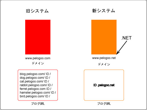 A1.例えば、旧システムのブログのアドレスがhttp://dog.pelogoo.com/oshirase/の場合は